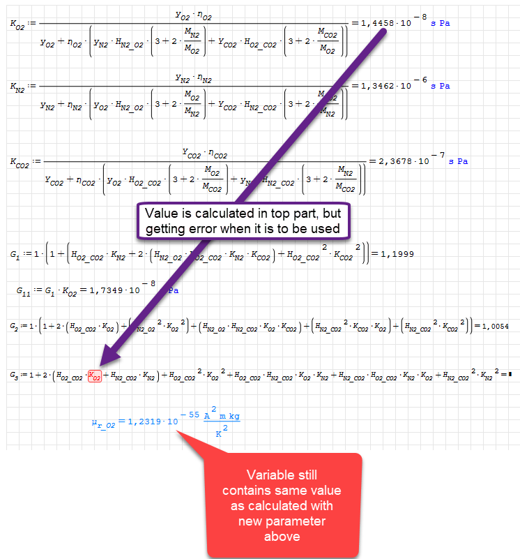 Trying first time with some bigger formula set, but now I have run into a problem with some error propagating into the calculation. Seems more or less lie anything becomes a problem some way down and even if I reformulate the formulas there pops up another problem with a value not being set as shown in the attachment. When I rewrote the formula then another value was marked red.