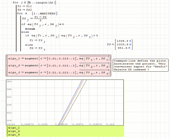 I am sorry if I made any confusion here. I used the file in this Jean's post and just added at the end the same calculation with FindRoot() (picture in this post) instead od Bisection(). Just wanted to try it and add it to this problem as an alternative, nothing else. For instance, I could see that if we use some other guess value some of the calculations will give some non viable solutions (like on the attached picture). Moreover, I mentioned many times that nonlinear solvers are one of the great importance for me and having, say, lots of root finding functions are some of the "must have" things. I also mentioned few times that I had to give up from some of the nonlinear problems - in SMath I just did not know how to solved them.