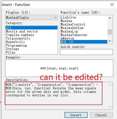 during study Smath Studio , I would like to add some my own description to functions just for better memory / understanding .