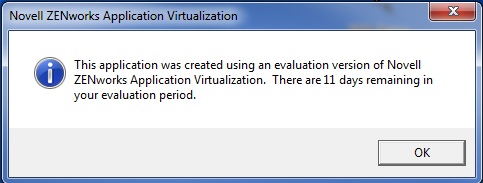 Novell ZENworks Application Virtualization Popup when running Smath - prompts user on how many days are left in trial - Messages
