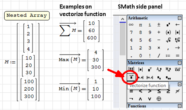 The arrow in the SMath sidebar represents a calculation operation and is not