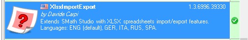 Using SMath Studio Desktop v 0.99 build 7610 with XlsxImportExport 1.3.6996.39330