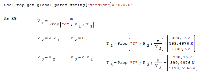 Attached the workaround: use IG equations (Constant K = P1 V1 / T1 = P2 V2 / T2 ) which give very close solutions.