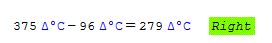 • If the two operands are really meant to be temperature points then the result is a change or difference of temperatures and it's unit must be left to K or set to Delta°C. Setting it to °C is wrong.