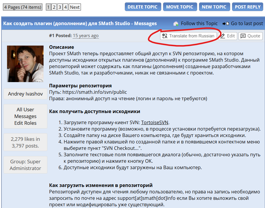 - Translate button is added to the messages if its language differs from the current Forum language: Example url.