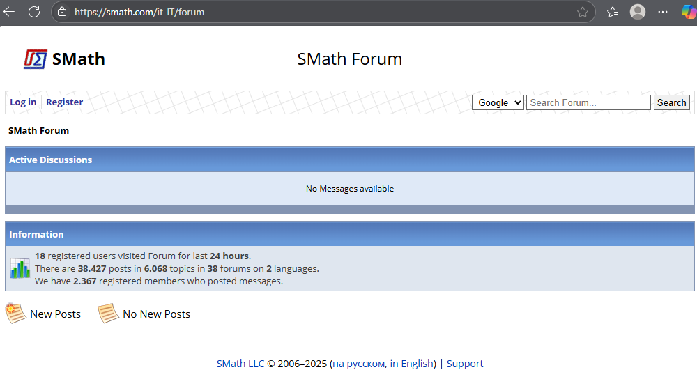 - Both English and Russian parts of the Forum now uses SMath user profile, so once you logged in on smath.com you can use the Forum as well.