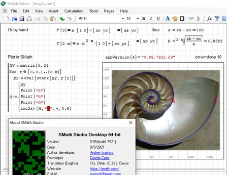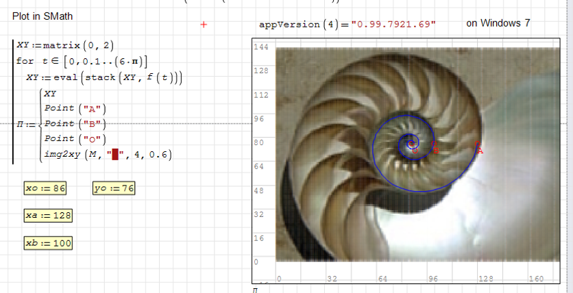 Read another post, I was able to reappear the great job you had presented here and that I had a little forgotten despite being quite recent. Reopening the file again, however, for the only case of the logarithmic spiral, but for both graphics (native SMath and XY plugin) the background image is scaled and consequently also not congruent with the overlapping curve. Non-evidence scaling parameters in the treatment of the image. There are no problems with catenary.