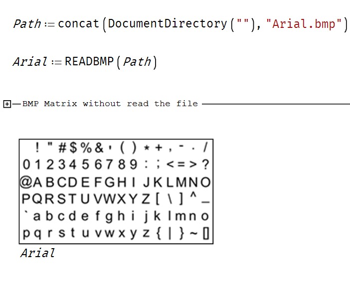 This is the bmp for Arial font (please right click on it and "save as..." ) :