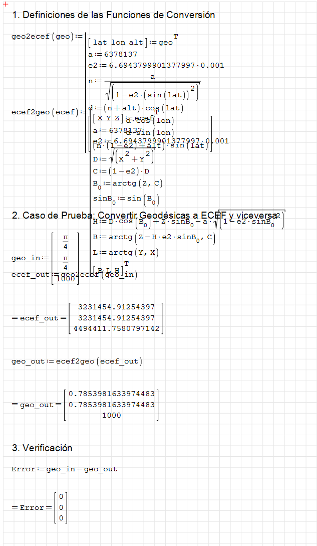 I asked to generate a document using formulas: Converting between ECEF and Geodetic Coordinates