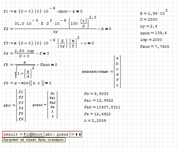 Форум SMath SMath Studio Ошибки и проблемы Findroot аргумент не может быть скаляром 1 страниц (1 вхождений) Findroot аргумент не может быть скаляром - Сообщения К последнему сообщению #1 Опубликовано: 12.04.2026 16:03:55 Ярослав 0 сообщений из 1 понравились пользователям. Группа: User не понимаю что не так делаю, может кто подсказать почему он считает abc скаляром? 1 страниц (1 вхождений) Новые сообщения Нет новых сообщений