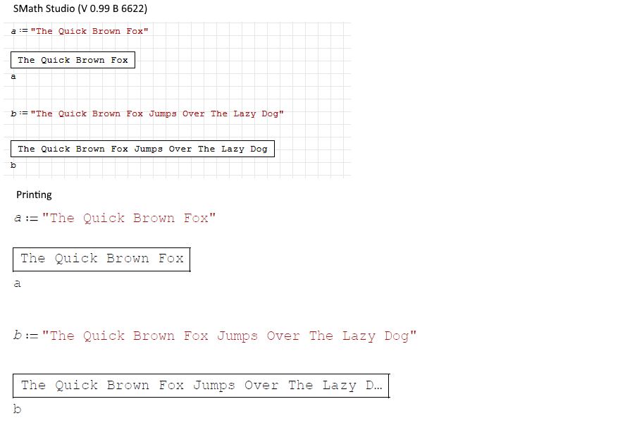 I am however having one small issue. My table displays fine within SMath, but when I print, depending on how many characters there are, the table cuts off.