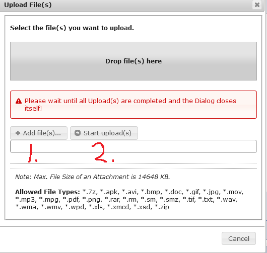 then click add file first. Navigate to file and select. Then you must click start upload to upload it.
