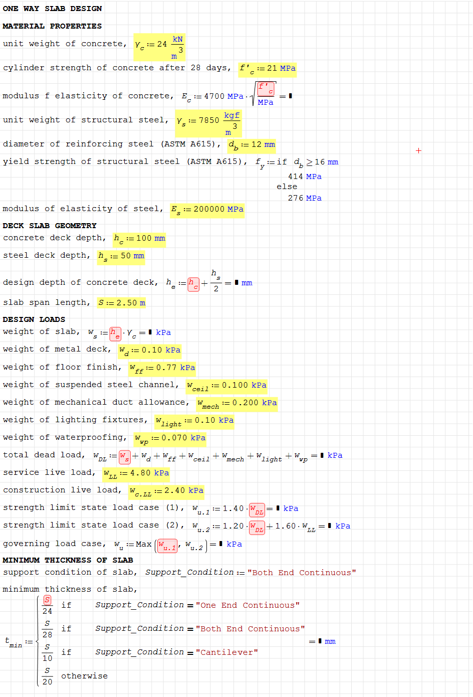 (2) May you look at the image below. I generally use: [text goes here, variable:=1mm] all in the same line and it comes blank. This was not available in Mathcad and was actually a good thing for me since I possibly can't misplace their descriptors whenever I'm moving things,especially variable, around. Problem is this one makes an error for me. Is what I'm doing a bad practice?