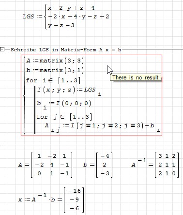 How, to write the coefficients of LGS in a matrix ?