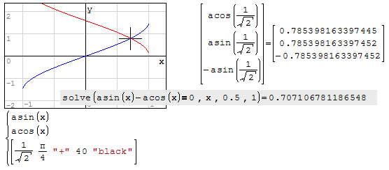 Symbolic eval acos(1/sqrt(2)) = pi/4 but -asin(1/sqrt(2))=asin(1/sqrt(2))