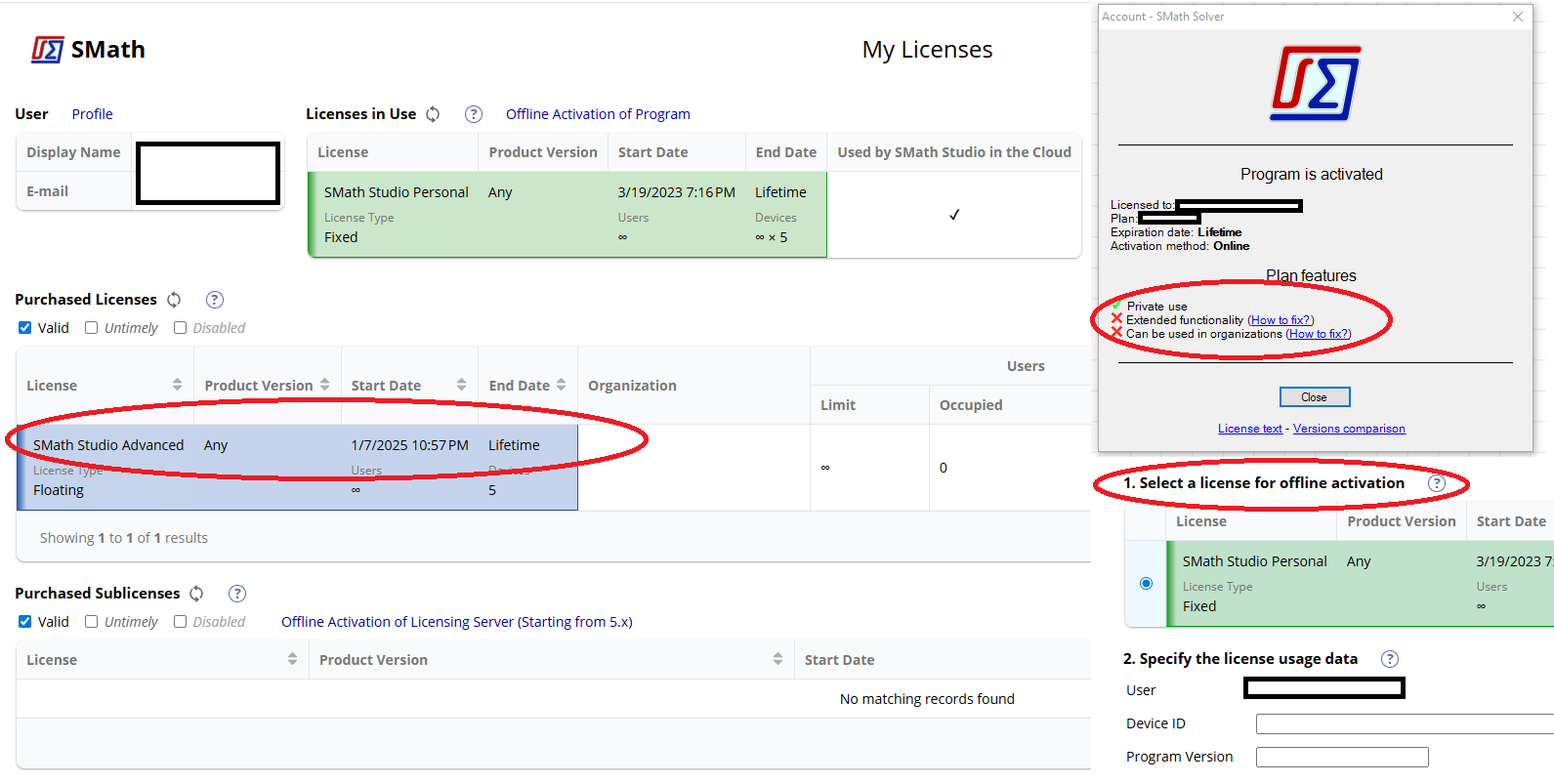 My local install of SMATH is not seeing its Advanced license, and I am not able to pull an offline license for it either.