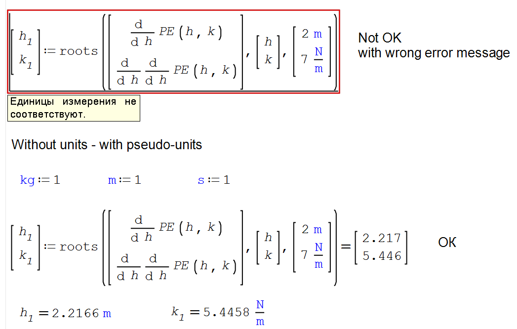 Roots & Solve functions - Roots & Solve - units - Сообщения