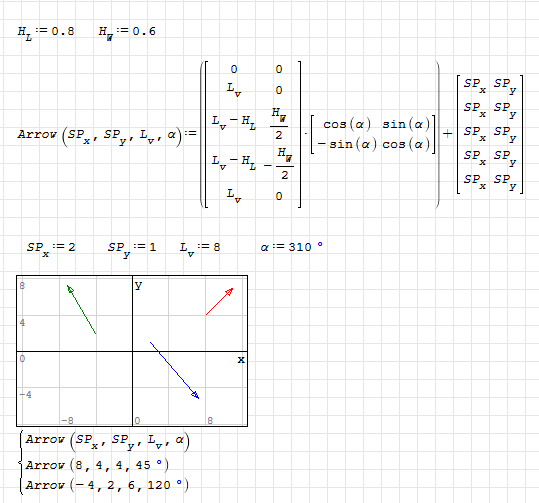 But it would be nicer to define a function e.g. Arrow(start_x; start_y; length; angle).