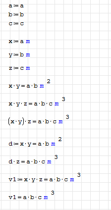for v2, symbolic evaluation is as expected x.y.z, but the unit is not as expected (m^5 instead of m³ )