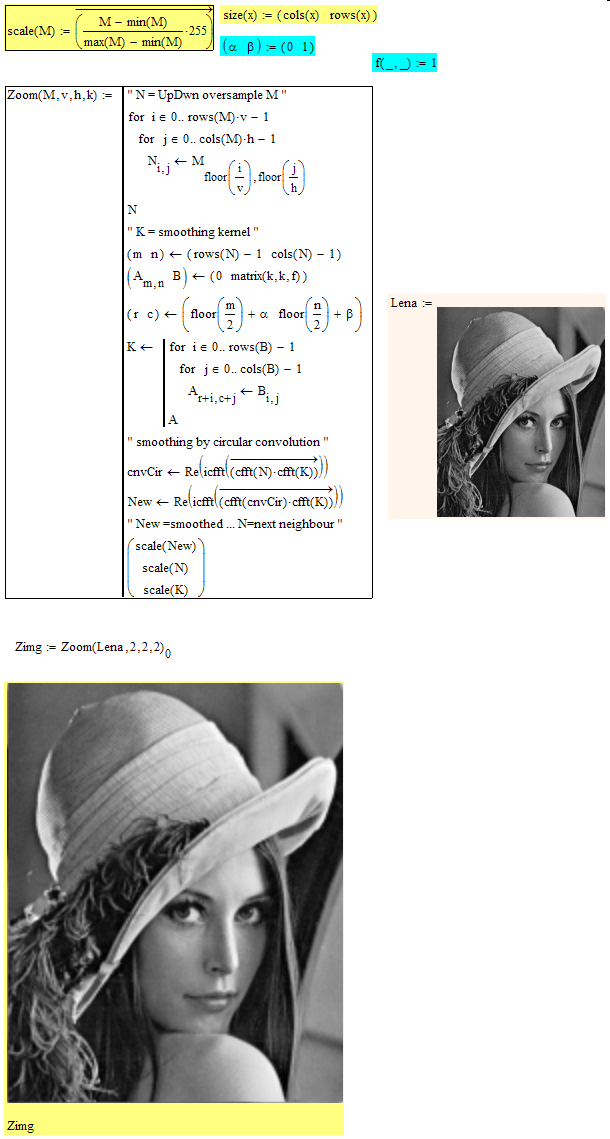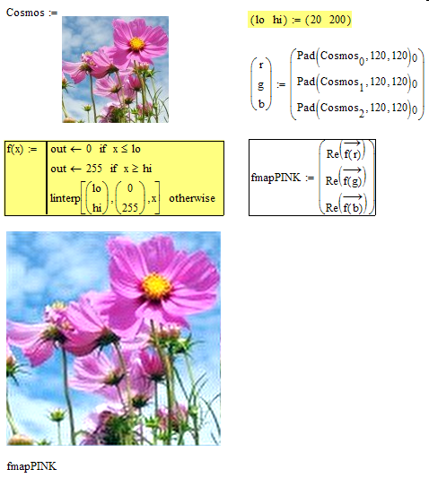 image as a "variable". As such it supports many natural Mathsoft matrix functions for image procesing +++