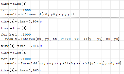 Still, Inter2d is the fastest (on the computer I use at the moment) when used against a real matrix (23x13), with 6x speed gain over my bilinear.