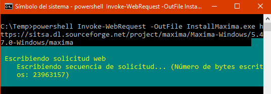 powershell Invoke-WebRequest -OutFile InstallMaxima.exe https://sitsa.dl.sourceforge.net/project/maxima/Maxima-Windows/5.47.0-Windows/maxima-5.47.0-win32.exe