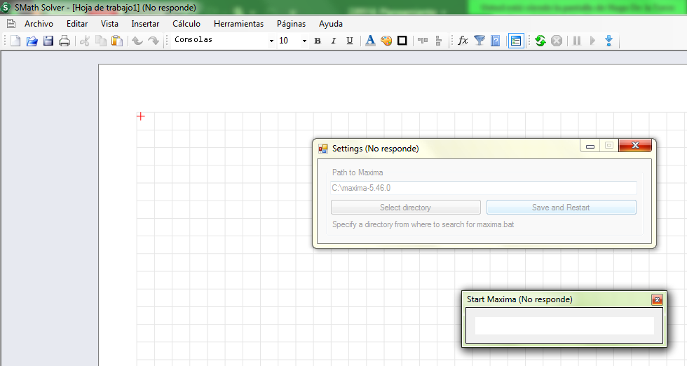 3) When I go to the Insert - Maxima - Setting section (to link both programs) I get these notes that I publish in images and one video