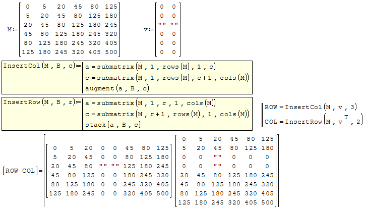 WroteAdding a row or column in Mathcad, mid Matrix, was simple.