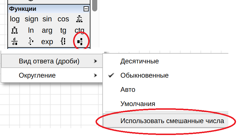 ЦитатаMixed numbers functionality implemented (function in the Math Region, result value option, button on the side panel, item in calculation settings);