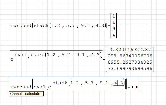 And those multiple eval() everywhere are annoying. It is good idea as well to change stack to Mathcad style.