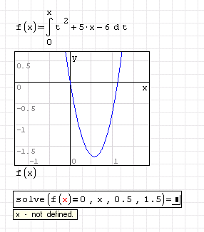 solve needs an expression and sometimes can fail. For instance, due to the way of calculating integrals in SMath (numerical solving) this can not be solved using