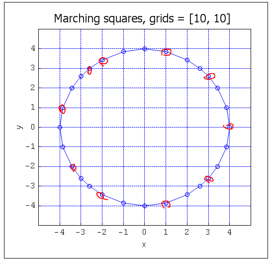 It's hard to do. Symbol density depends on the density of points. But it depends on the algorithm used and the type of function. I'm using the marching squares algorithm that generates a set of segments on the grid cells. Each segment - two points at the ends of the segment. More cells - more points, and hence more symbols. The segments are drawn independently each other.