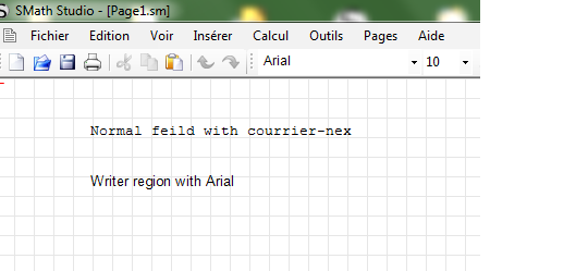 Also the file Page1.sm contain the following test where the first line is a normal text (font courrier-new) and the second line is a write region text (font arial) :
