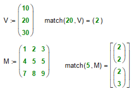 Hi Valery. Here some versions of a like mathcad match() function.