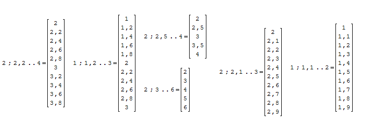 range(1, 3, 1.2), range(2, 4, 2.5), range(2, 6, 3)