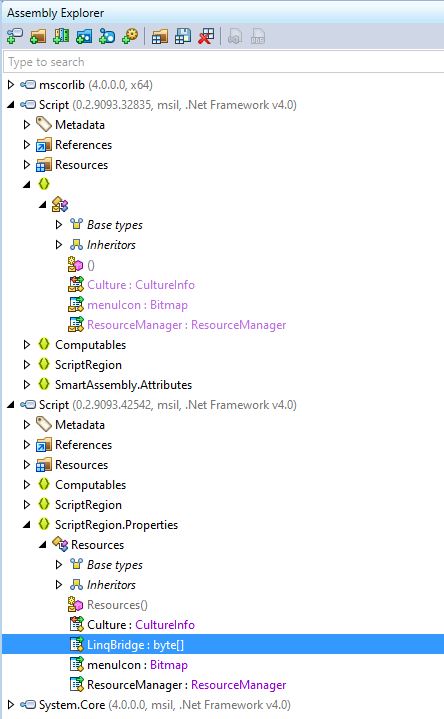 The image below shows the difference between two assemblies. One assembly has an embedded resource in the form of a library, while the other does not.