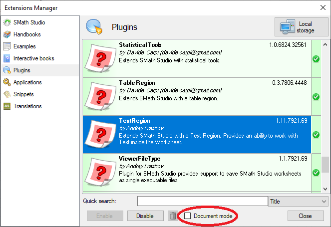 WroteSince there is SMath Writer now, document mode is deprecated.