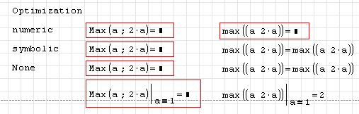 Confirmed. This is bug of Min() and Max(). Apparently they always try to return a numeric result, regardles of what the optimization setting is. If they would return themselves with evaluated/preprocessed arguments, at() would work, as the example with max() shows.