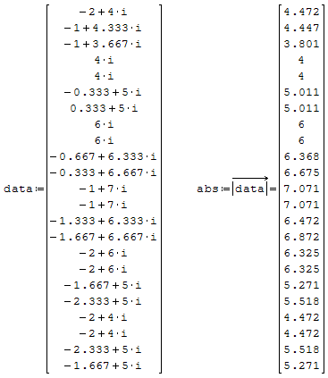 Task: I have vector with complex numbers. There are need to take a vector with modules of this complex numbers.