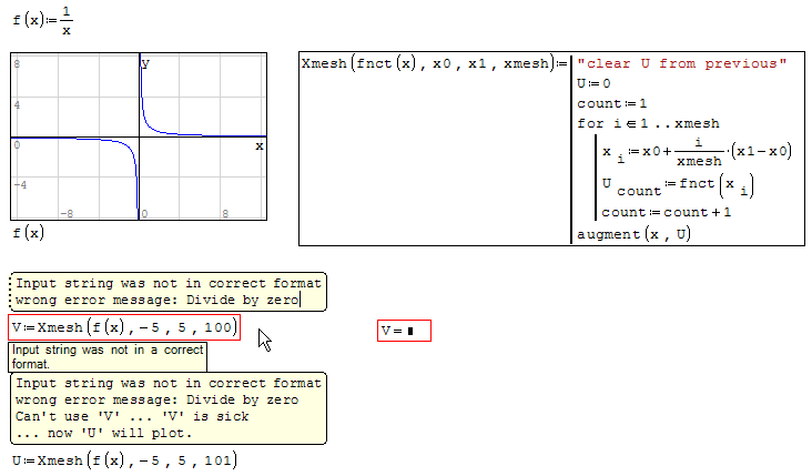 Lat's say I write a solver (inside SMath, not a plugin). I pass to it a function, and some range(s). While solving, it may encounter some extremum, where the function performs division by zero. In this case, SMath simply stops the block, emitting the error.