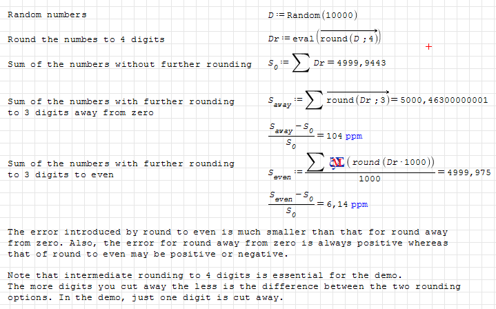 Personally I do not see significant benefits from round-half-to-even (because SMath Studio never knows source of the data it works with), but this, of course, has no sence.