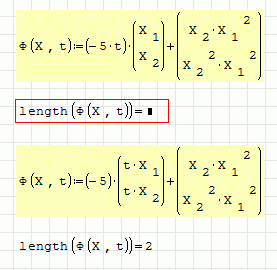 [MATH=eng]Φ(X,t):-5*t*mat(el(X,1),el(X,2),2,1)+mat(el(X,2)*el(X,1)^2,el(X,2)^2*el(X,1)^2,2,1)[/MATH]