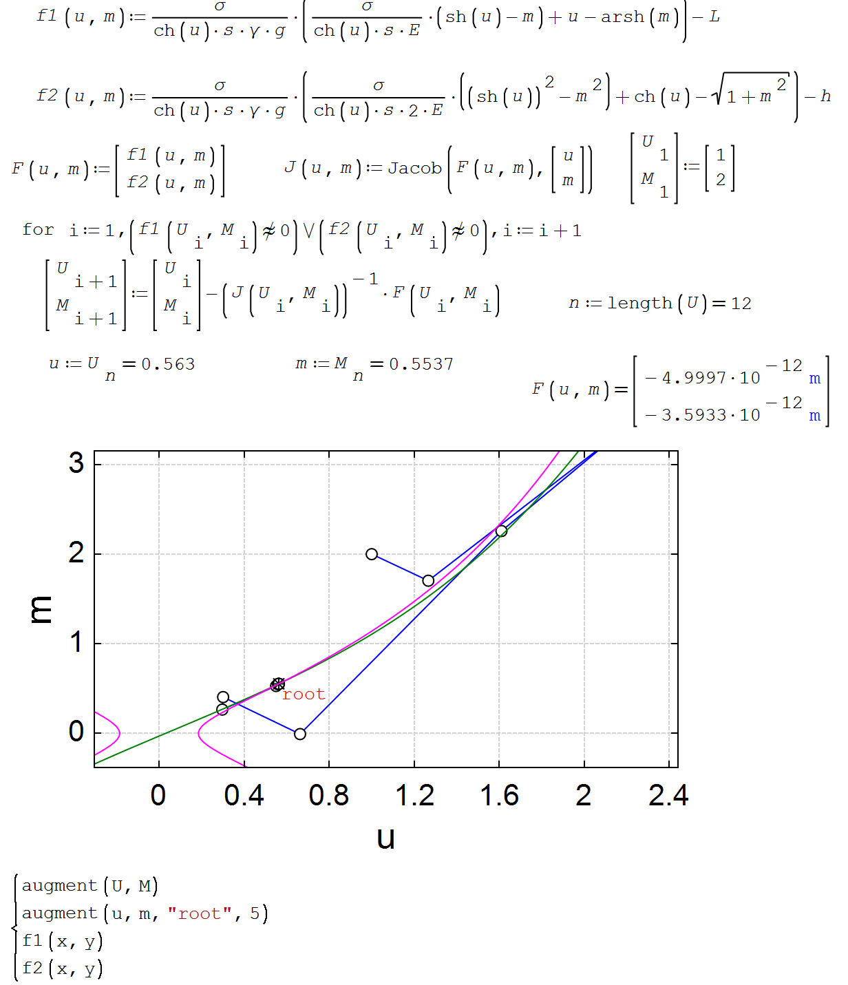 SMath Forum SMath Studio Questions How to solve the nonlinear equations? 1 Pages (4 items) How to solve the nonlinear equations? - Messages Go to last post #1 Posted: 2025/3/4 10:39:59 netsonicyxf 2 likes in 79 posts. Group: User The 4 unknows are H, u, m and A0The al_nlesoolve doesn't get answer.File not found.File not found. #2 Posted: 2025/3/4 13:33:17 Valery Ochkov 64 likes in 670 posts. Group: User The first step!From 4 to 3 equations! #3 Posted: 2025/3/4 21:04:31 StvMath 43 likes and 1 dislikes in 68 posts. Group: User In fact, reduce to two equations and use a simple two-variable Newton-Raphson:1b.sm (23.34 KiB) downloaded 979 time(s). 1 users liked this postnetsonicyxf 2025/3/5 18:18:00 #4 Posted: 2025/3/6 00:56:21 Valery Ochkov 64 likes in 670 posts. Group: User With plotForum.sm (22.7 KiB) downloaded 994 time(s). 1 users liked this postnetsonicyxf 2025/3/8 21:52:00 1 Pages (4 items) New Posts No New Posts