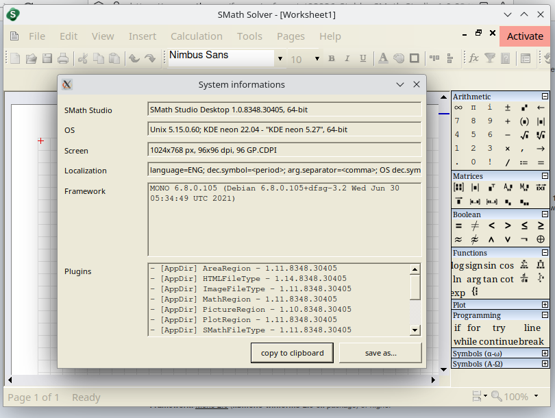 I tried SMath official appimage with latest stable KDE Neon under Qemu.