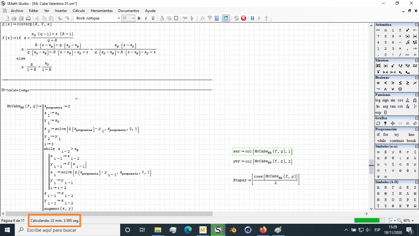 McCabe - Thiele Binary Distillation - McCabe code takes a long time to calculate - Messages