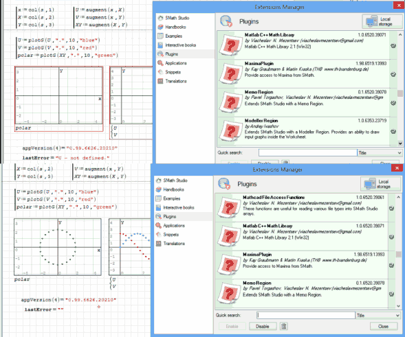 In the first case, I open Smath Studio in a normal way with all the plugins activated,