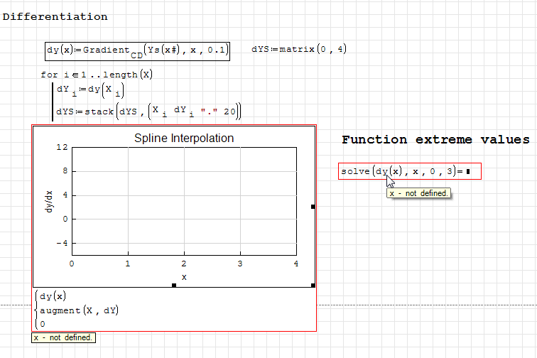 Moreover, when I use Davide's, Gradiend.CD() I can get a function by numerically differentiating - but not its roots. This is a long time story, and I still can not figure out how to deal with this kind of problems in SMath.