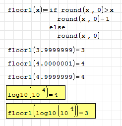 However, the implementations of floor that I tried, do not return the correct value for integer powers of 10^x. As shown in my example.