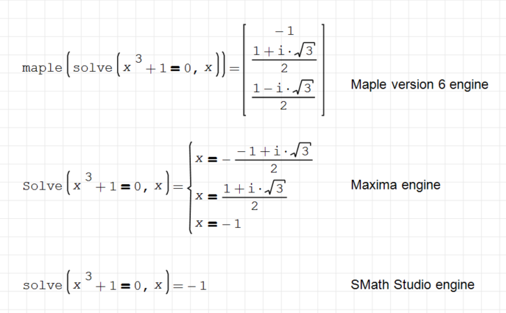 On the other hand, when there will be a need to make more complicated calculations and maxima and maple 6 engines will not be able to do the calculations then SMath Stufio will be stuck and the user will be blocked because he will not be able to go further due to the limitations of the non updates of engines used by SMath Studio, none of which can be improved from what I understand so that SMath studio to be still powerfull. tThose guys from Matlab or those from octave can work on the engine in order to perfect and improve it, remove bugs associated with the engine, and make more powerfull, even users need to buy their engine separately.