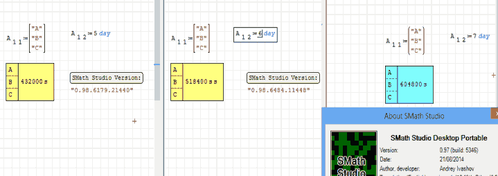 versions of Smath Studio 0.98.6179, 98.6484 and 0.97.5346, and in